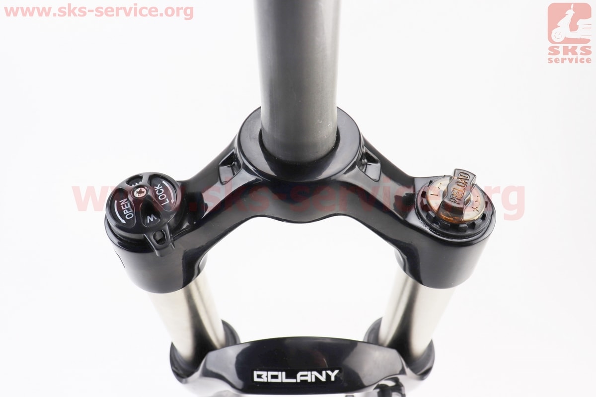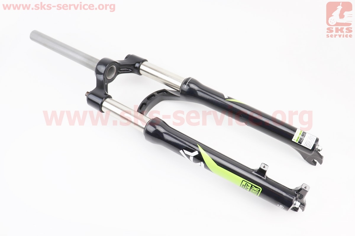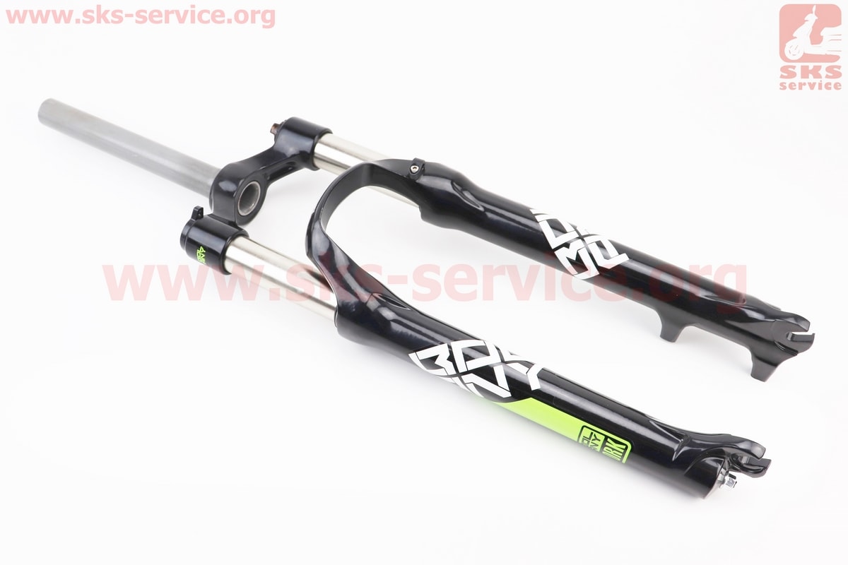Вилка 26" амортизационная, без резьбы 1-1/8" (28,6мм), шток 220мм, с ходом 100мм, Disk-brake, M Lockout, алюминиевая, чёрно-зелёная BOLANY