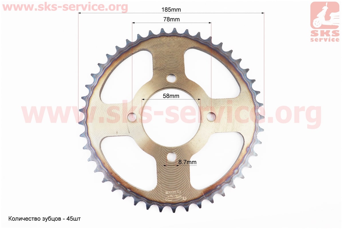 Звезда задняя JD125 — 428-45Т — d=58; 4отв.*78mm "каленая"