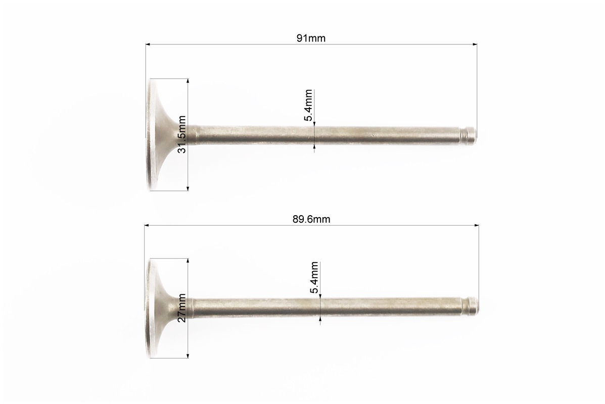 Клапана выпускной (h-89,6; d-27), впускной (h-91,0; d-31,5) к-кт 2шт CB-150/200cc