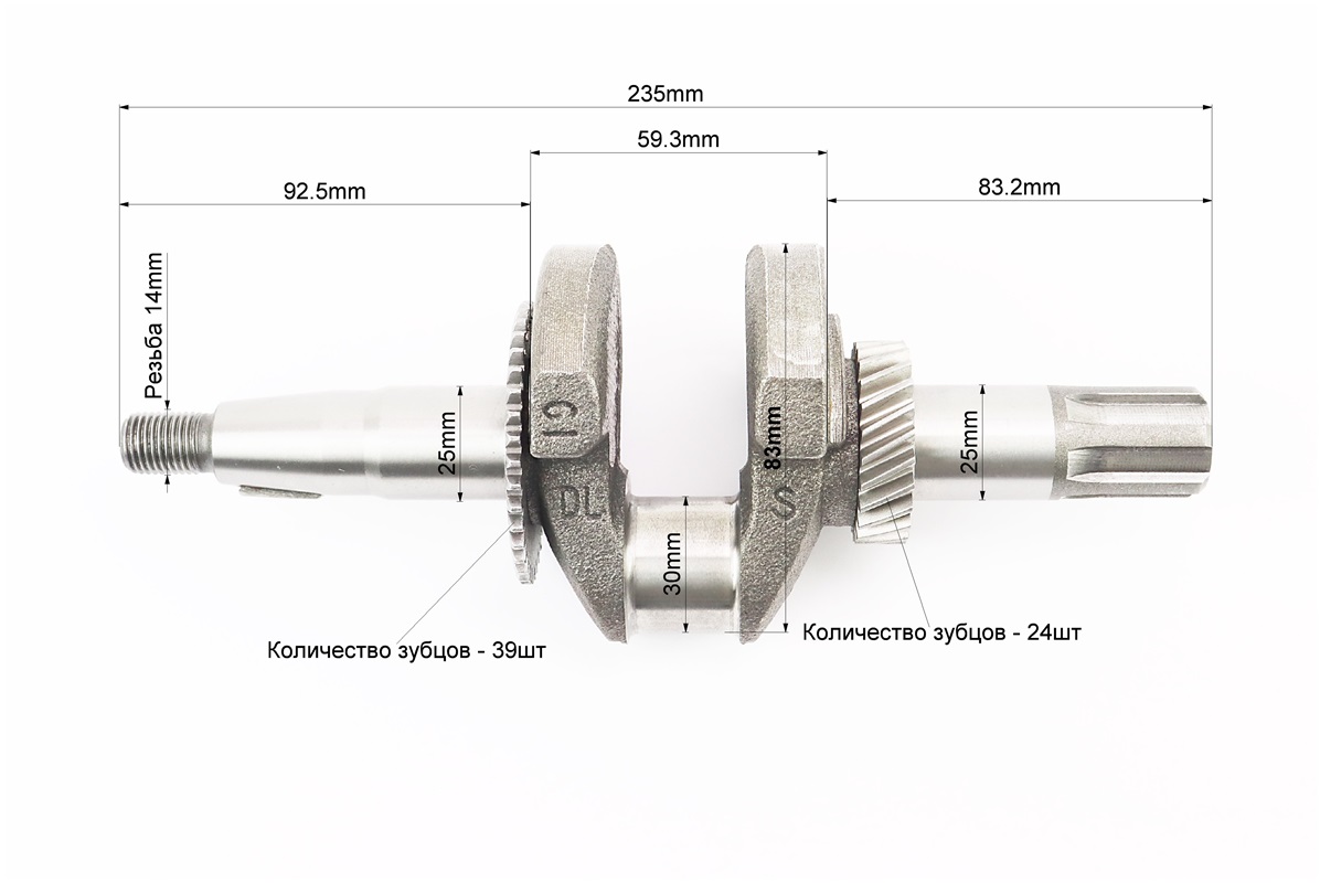 Коленвал 168F/170F (Dшейки-30mm, H-85mm, L-235mm) под шлиц D-25mm (есть резьба со стороны шлицов)