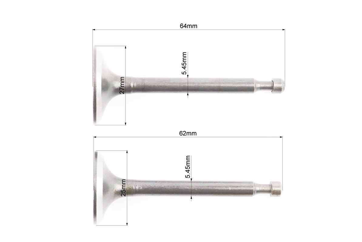 Клапан впускной (h-64; D-27; d-5,45), выпускной (h-64; D-25; d-5,45) к-кт 2шт 170F