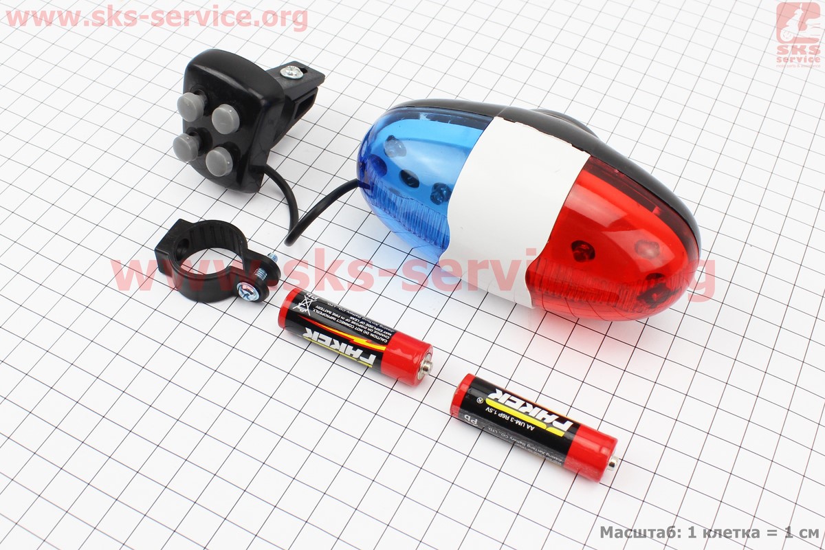 Звонок электронный 4 мелодии, 6 диодов, "police" JY-325 (без батареек)