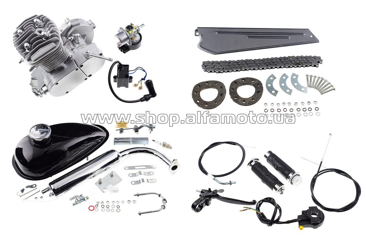 Двигатель велосипедный (в сборе) 80сс (бак, ручка газа, звезда, цепь, без стартера) KOMATCU
