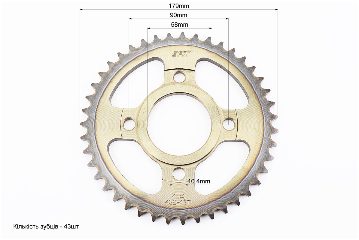 Звезда задняя WY125 — 428-43T — d=58; 4отв.*90mm "каленая" (ZS125J спицы)