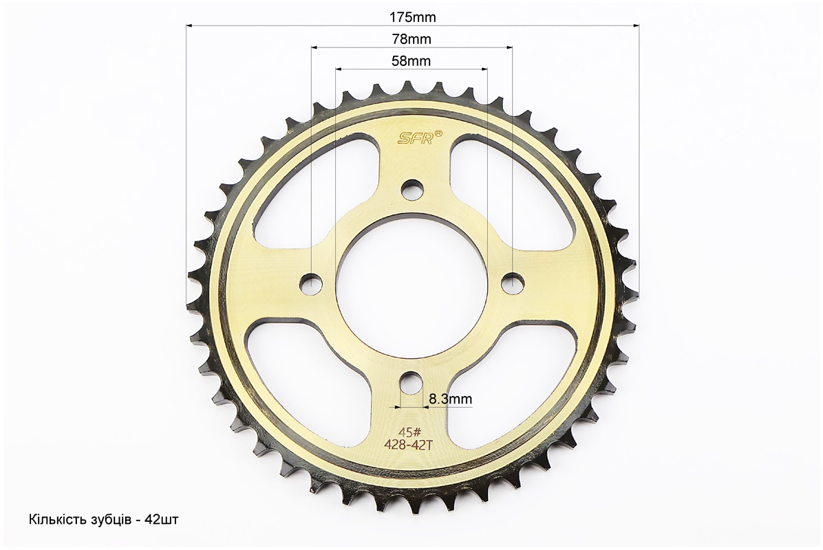Звезда задняя JD125 — 428-42T — d=58; 4отв.*78mm "каленая"