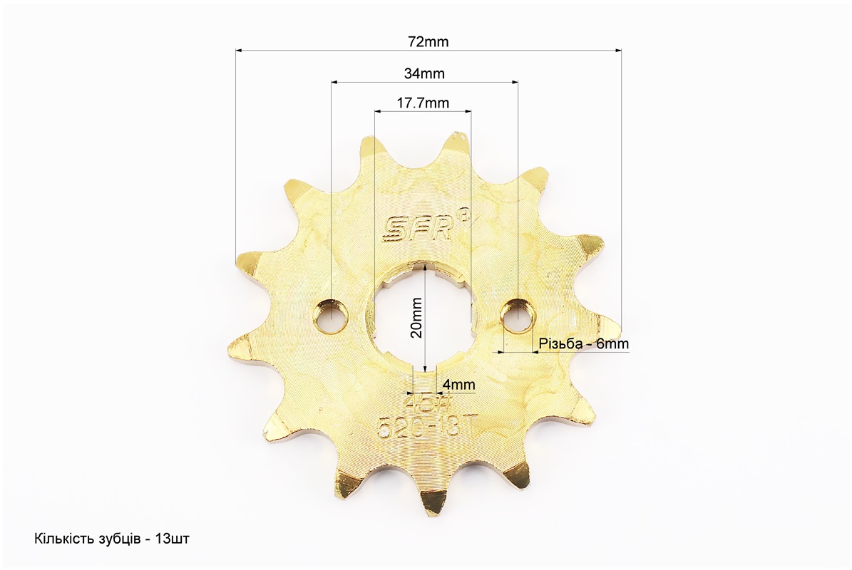 Зірка передня CG/CB-520H-13T (шліц 4мм) GOLD