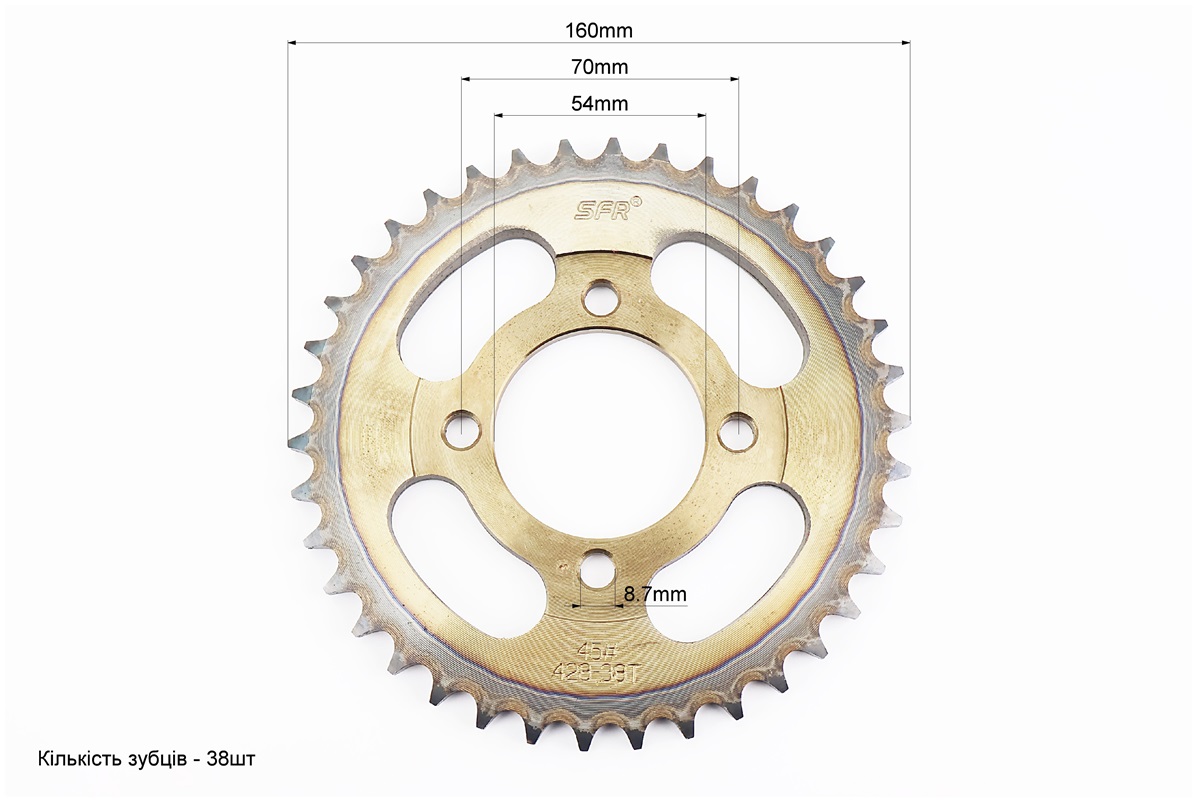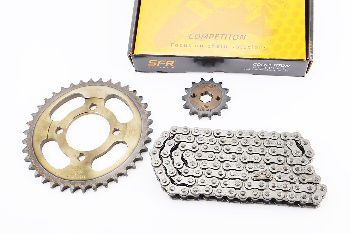 Звезды, цепь к-кт JH — 428H-108L+38T+14T (в коробке) "каленая"
