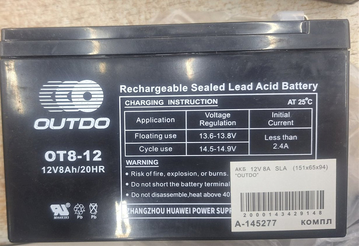 АКБ 12V 8A AGM (151x65x94) OUTDO