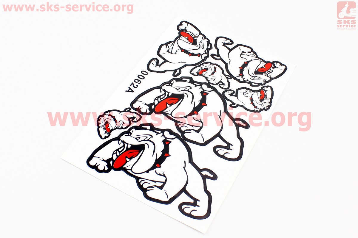 Наклейки набор 7шт "Бульдог" белые 0062 (28х19см)