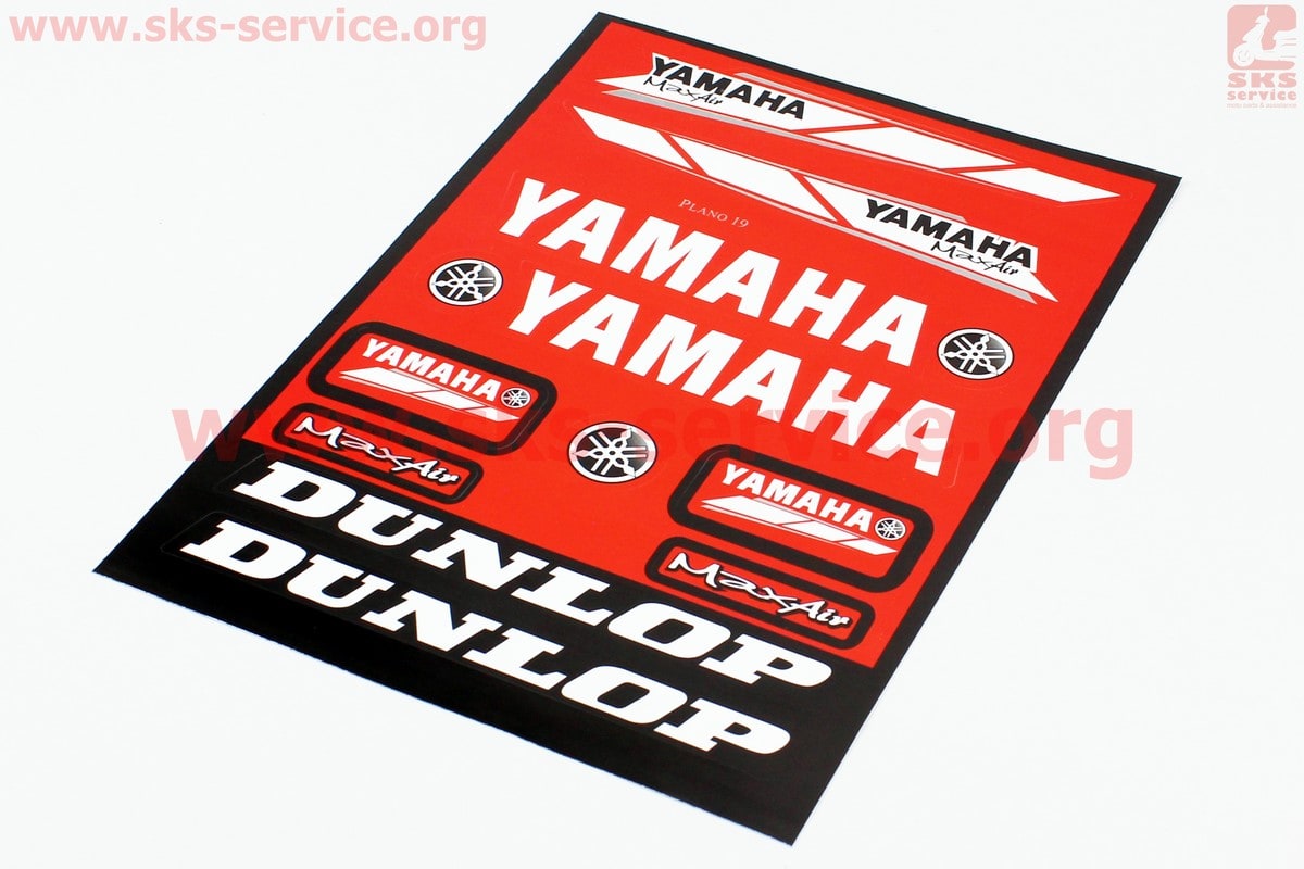 Наклейки набор 13шт "Yamaha/Dunlop" красные 5997 (23х32см)
