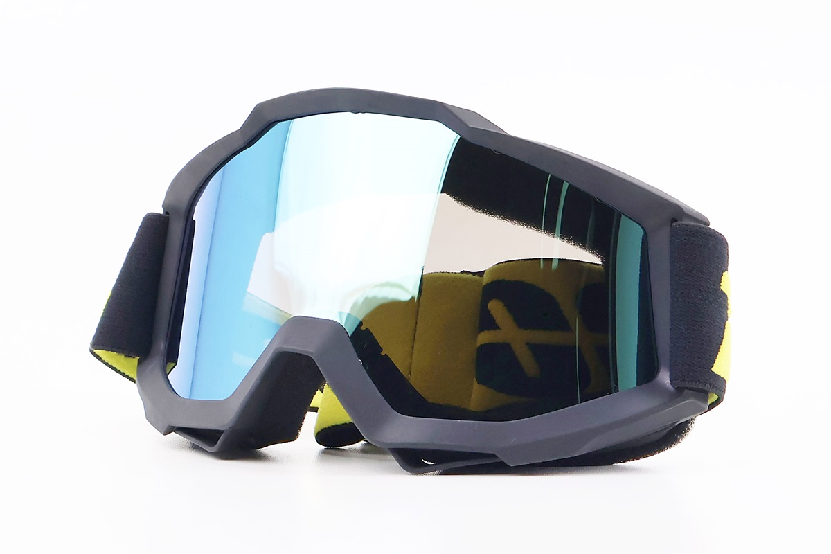 Окуляри кросові/ендуро/АТV, чорні з жовтим ремінцем (дзеркальне скло)