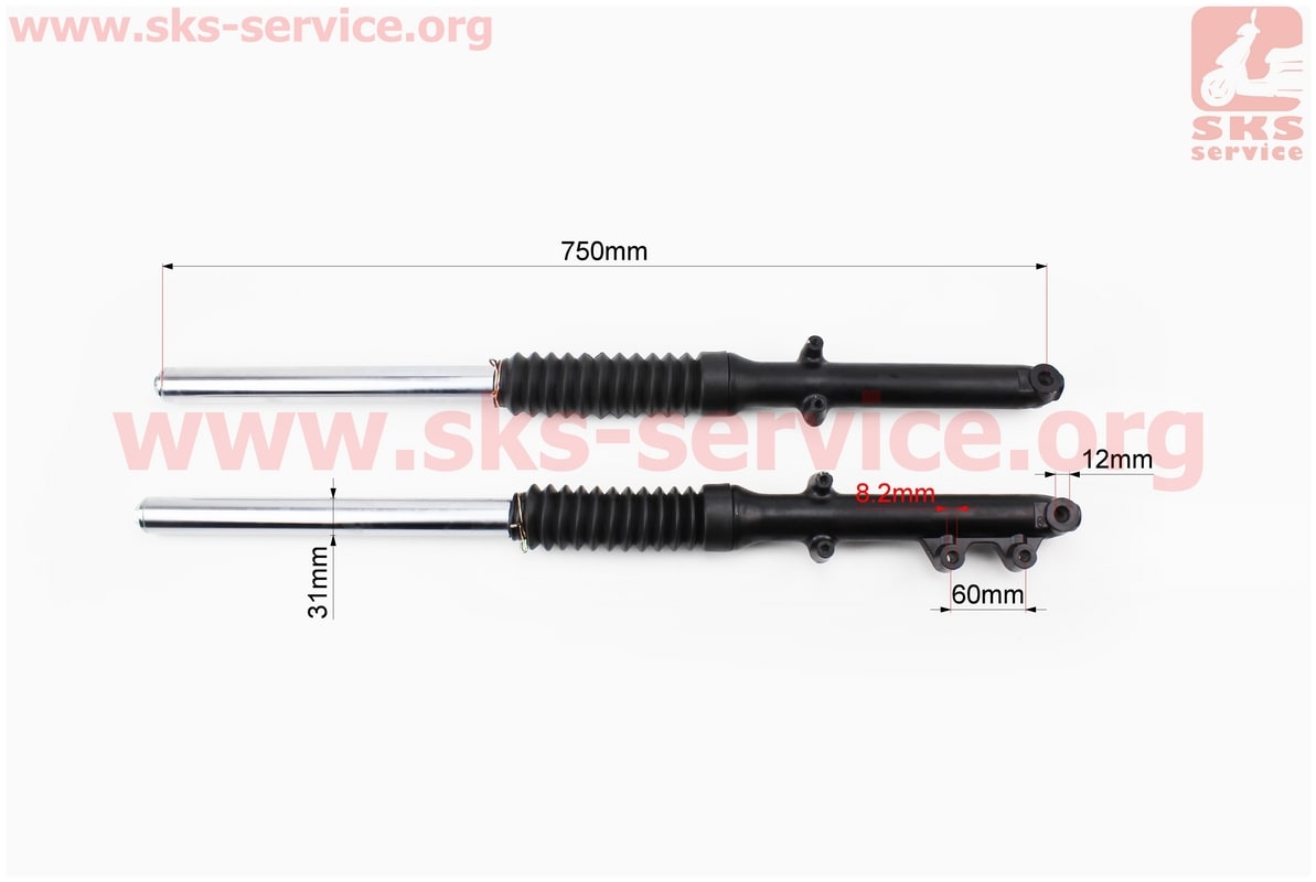 Амортизатор передний (перья), лев, прав. к-кт (диск.торм.) 755мм, черный