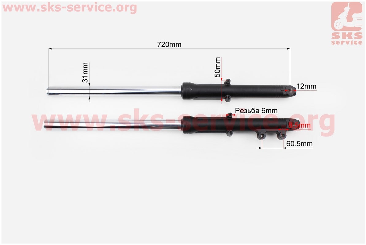 Амортизатор передний (перья), лев, прав. к-кт (диск.торм.) 720мм