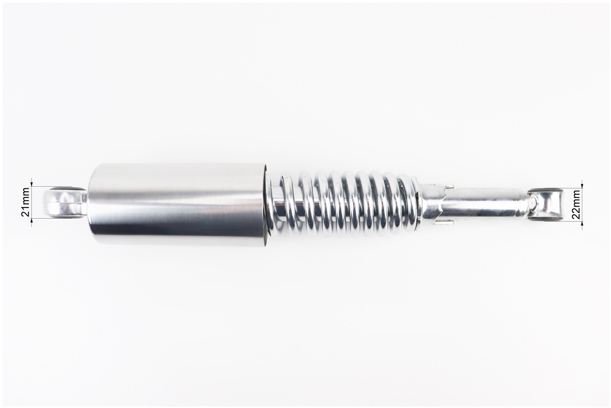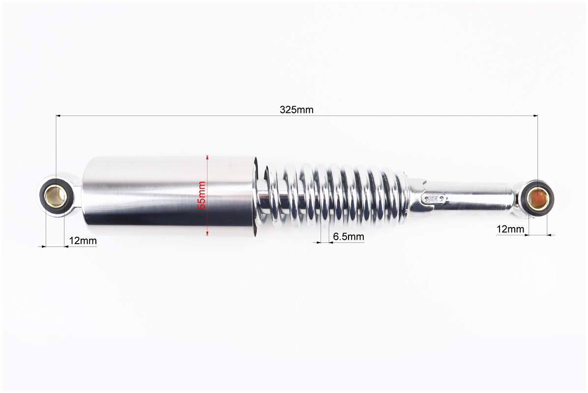 Амортизатор задний JH/CB/CG — 325мм*d55мм (втулка 12мм / втулка 12мм) со стаканом регулир., хром