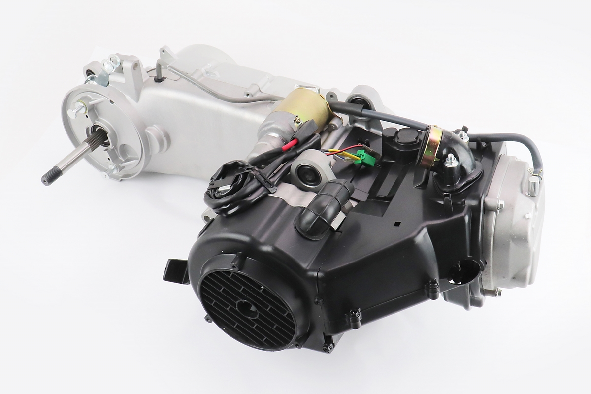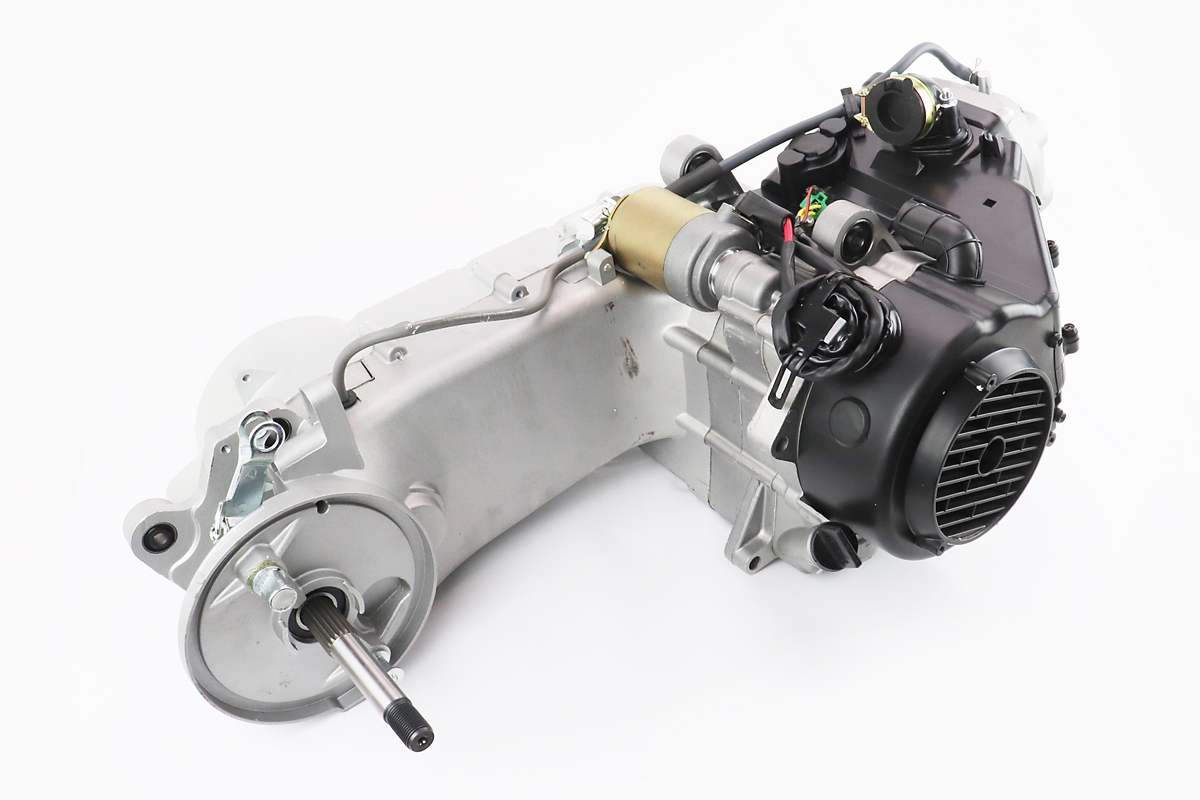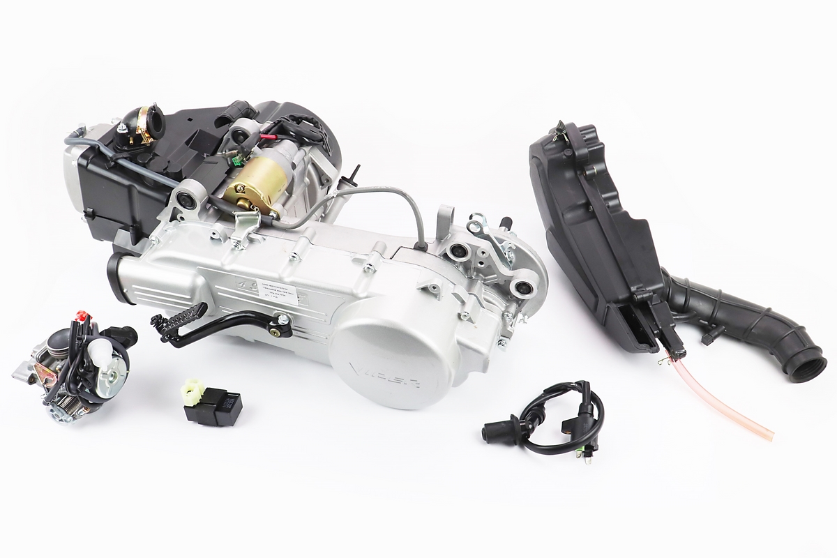 Двигатель скутерный в сборе 150куб (длинный вариатор, длинный вал) + карбюратор, коммутатор, катушка зажигания, фильтр воздушный