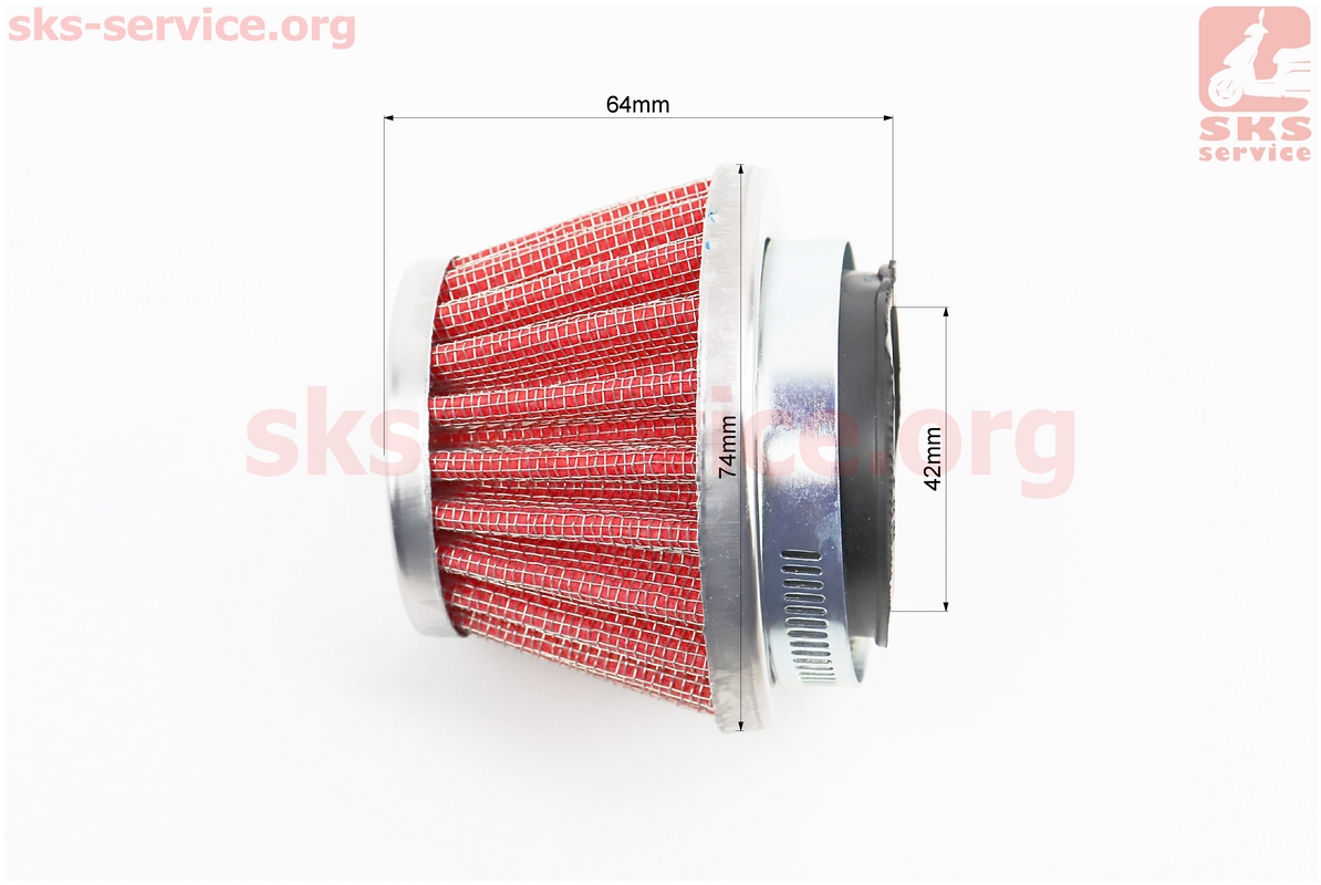 Фильтр воздушный нулевой 42мм прямой "конус", низкий КРАСНЫЙ