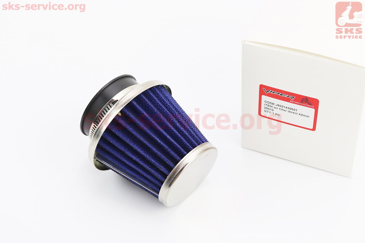 Фильтр воздушный нулевой 42мм прямой "конус", высокий СИНИЙ