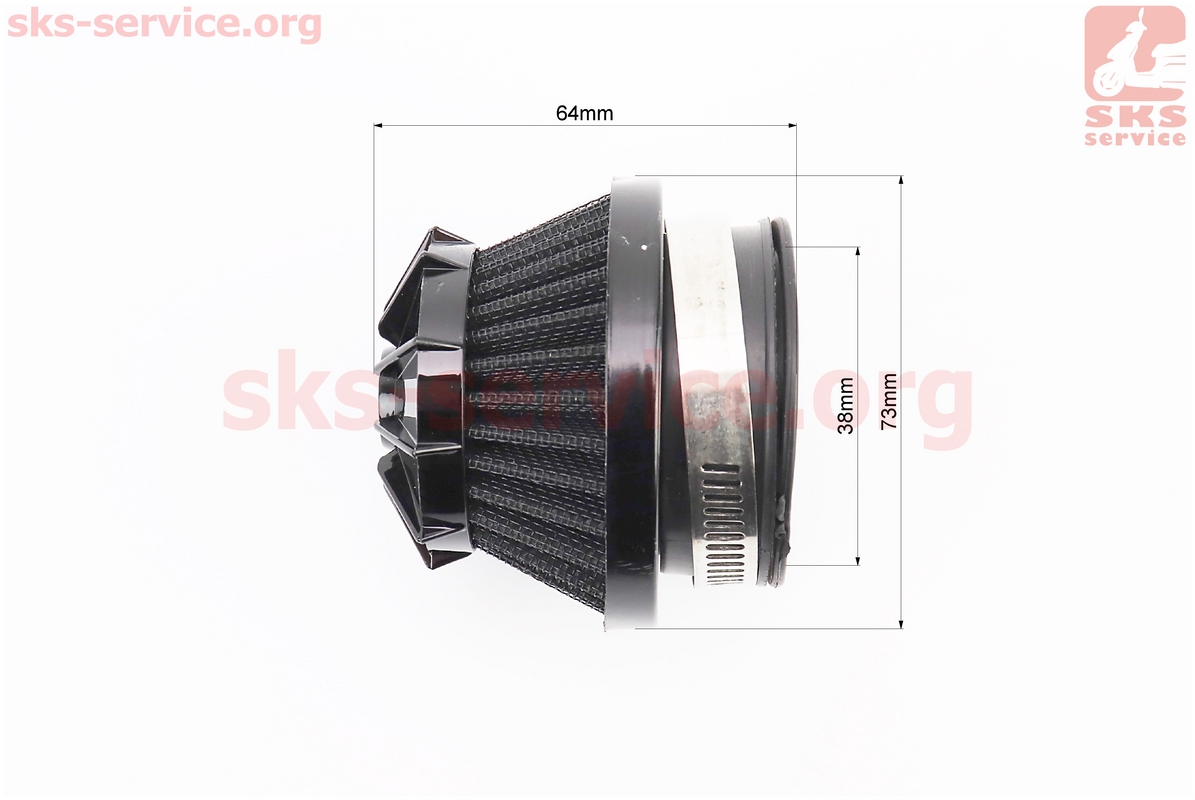 Фильтр воздушный нулевой 38мм прямой "конус" черный (малый)
