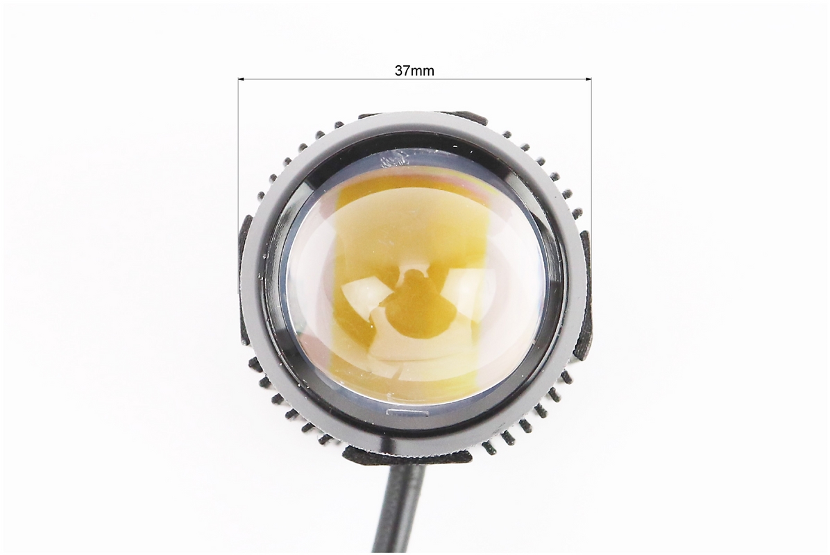 Фара дополнительная светодиодная влагозащитная - 1 LED с креплением и блоком розжига, круглая 37мм, к-кт 2шт (свет белый/желтый)
