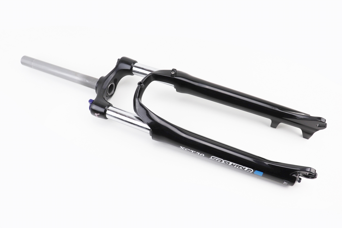 Вилка 27,5" амортизационная, без резьбы 1-1/8" (28,6мм), шток 255мм, с ходом 100мм, Disk-brake, пружинно-масляная, Lockout, алюминиевая, чёрная XCT30