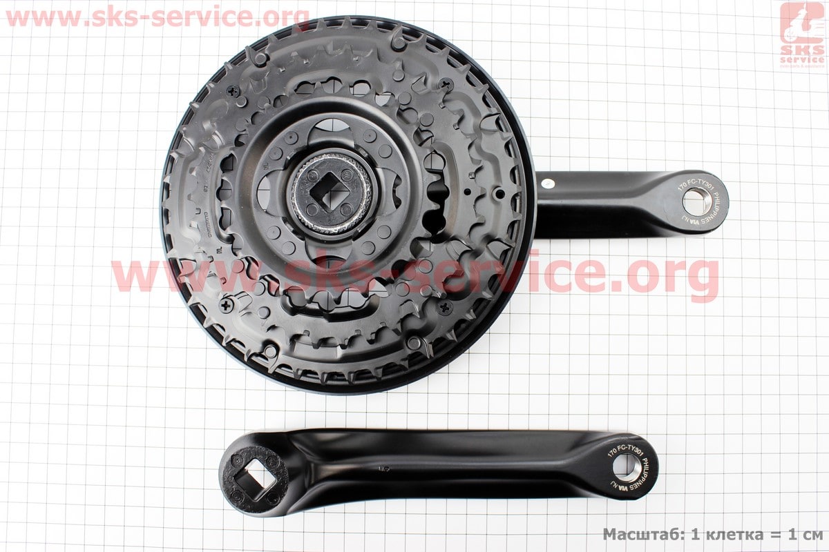 Шатуны "квадрат" 170мм, 42.34.24T MTB, алюминиевые, чёрные Tourney FC-TY301