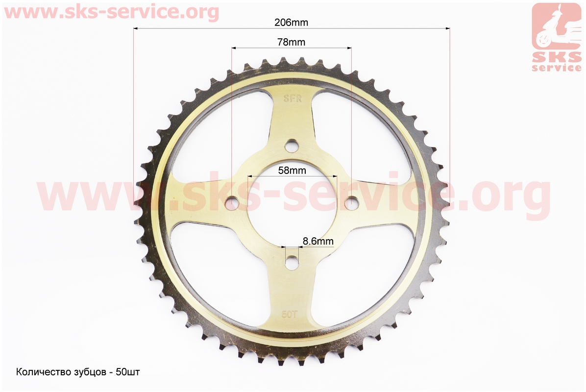 Звезда задняя JD125 — 428-50T — d=58; 4отв.*78mm "каленая"
