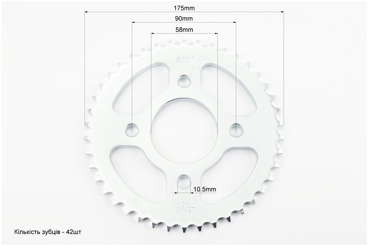Звезда задняя WY125 — 428-42Т — d=58; 4отв.*90mm (ZS125J спицы/BOXER ВМ/ВМX)