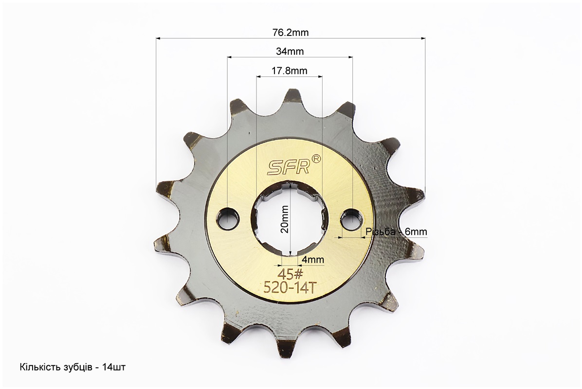 Звезда передняя CG/CB-520H-14T (шлиц 4мм) "каленая" Loncin LX200GY-3